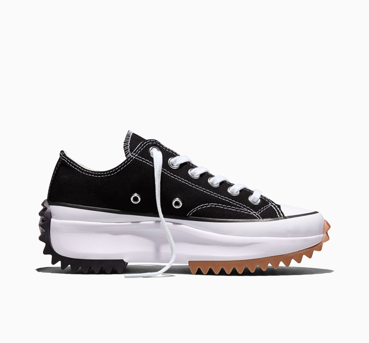 The low-top platform. Run Star Hike silhouette, Ox cut. All the chunky-sole drama, none of the high-top heat in 32-degree humidity. The pair that survived the platform-sneaker hype cycle and is still selling out three years later.